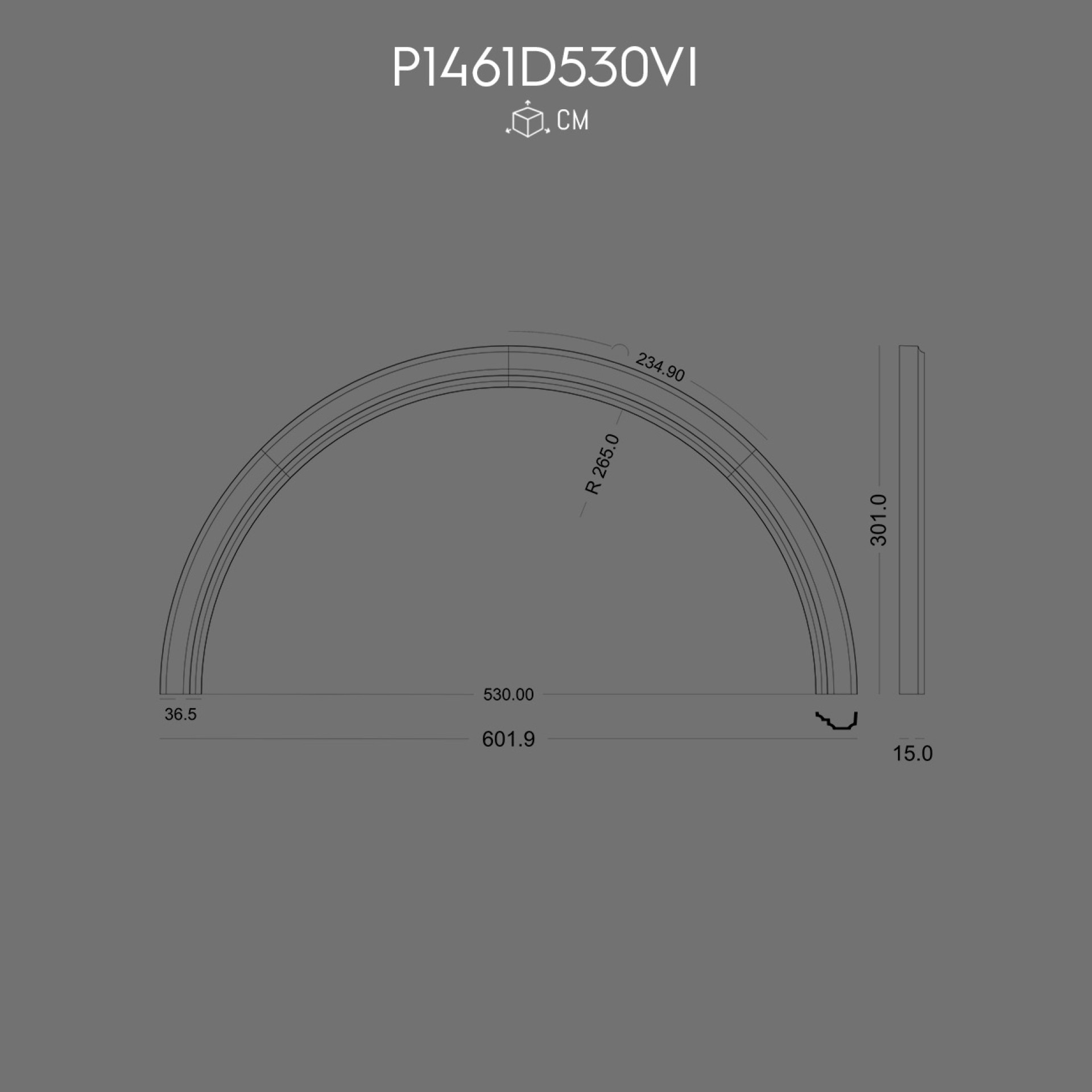 P1461D530VI Coroană cu rază pentru arcadă fereastră ușă de 530 cm